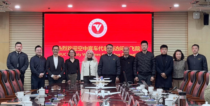 本网讯张雪松摄影报道:近日,空中客车(简称空客)售后市场战略高级副总裁AmayaGONZALEZ女士带队到访中飞院,就深化飞行培训合作与学院进行深入沟通。空客代表团参观了学院模拟机训练中心、广汉分院训练现场。学院副院长(主持行政工作)马建新、相关职能部门和二级学院主要负责人与空客代表团进行了座谈交流。