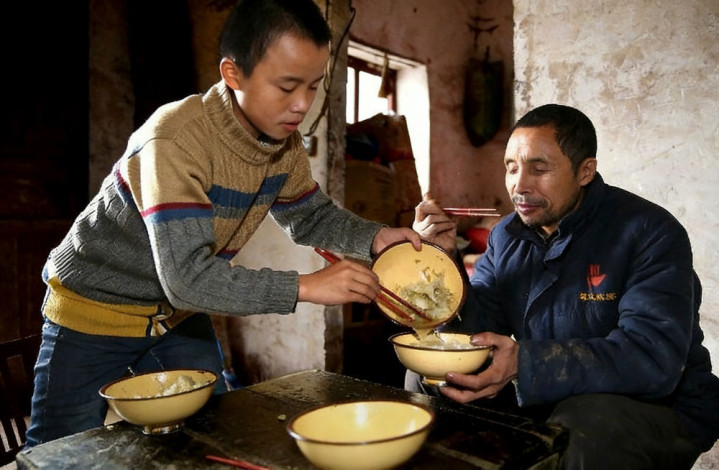时年13岁的冯莫林(左)与父亲冯连许(右)在安康市岚皋县堰门镇青春村的家中(资料照片)。