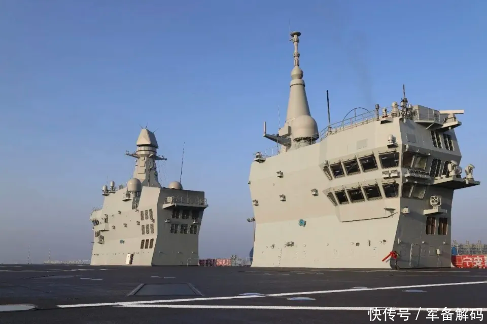 从央视披露的细节看,“四川”舰的“航母特征”肉眼可见:双舰岛设计、直通式飞行甲板、百余米电磁弹射轨道、两部侧装升降机、数千平方的大机库——这些配置令国外军事网站直呼其为“中型航空母舰”。但与传统航母不同,它保留了坞舱、车辆舱等两栖攻击舰标志性设计,可搭载千名海军陆战队员、气垫登陆艇、两栖战车及直升机,实现“立体登陆+空中突击”双重能力。这种“航母+两栖”的融合设计,堪称全球首创,既弥补了滑跃型航母无法起降固定翼预警机、隐身无人机的短板,又能通过“闪电航母”模式快速投送空中力量。