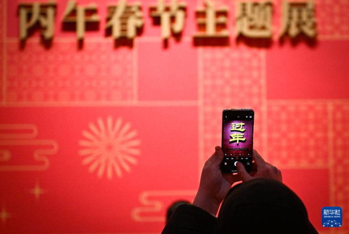 2月15日,观众在“过年——丙午春节系列主题展”上自拍合影。新华社记者陈钟昊摄